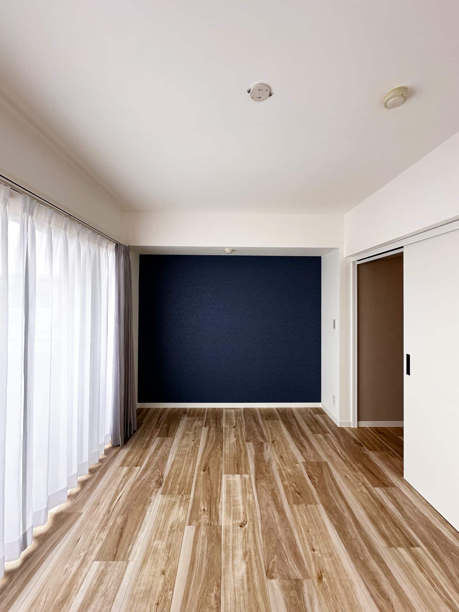 • ネイビーのアクセントクロスが映えるリノベーション洋室 拡大表示